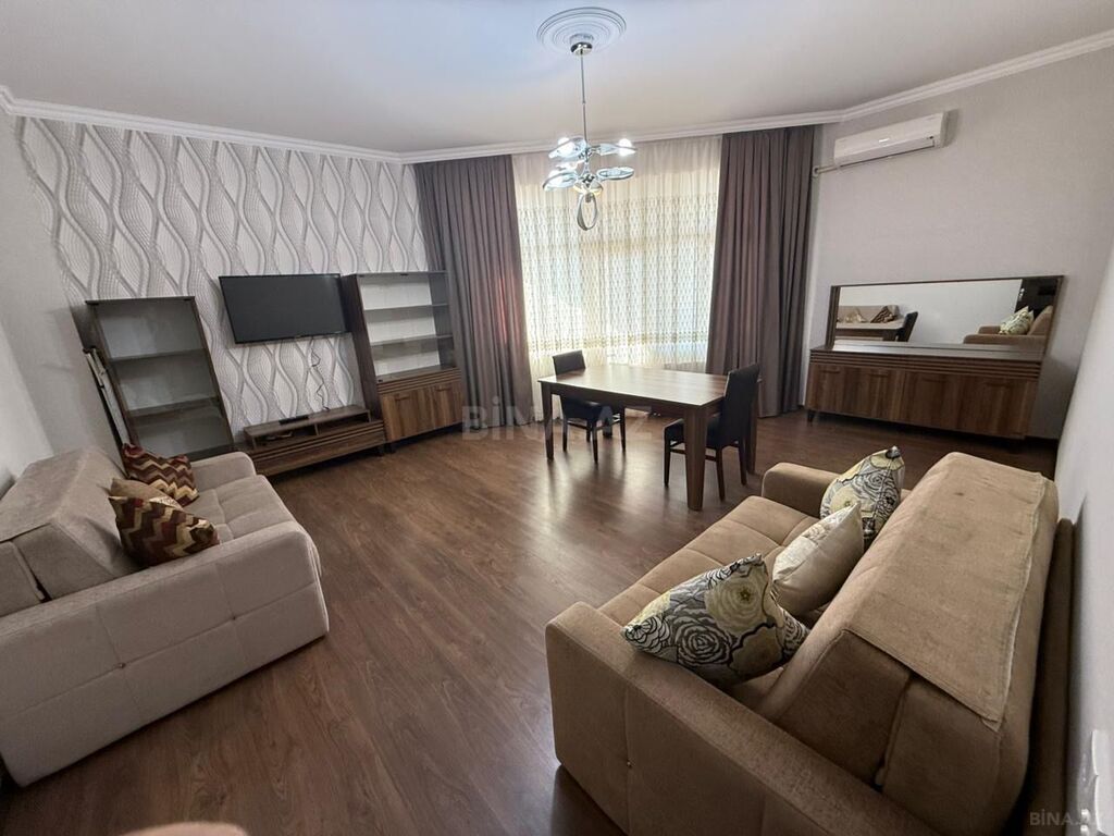 В новом доме, рядом с комплексами “Yeni Həyat” и “Azure”, на 8-м этаже 17-этажного здания. Площадь – 113 кв.м. Квартира после евроремонта, без проживания, полностью меблирована и укомплектована техникой.