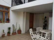 Qesebenin merkezinde, elverisli mekanda yerlesen, 4 sot icinde 2 ayri mertebeli ev satilir. Mertebeler ayri-ayridir. 2 aile serbest yasaya biler. Ikinci mertebe 120kv.m 5 otaqdan ibaretdir. Metbex studiyadir. Temirlidir. Birinci mertebe orta temirli 4 otaqdan ibaretdir. Birinci mertebenin ustu 90 kv.m terrasdir. Heyetde xudmani bag var. 3-4 agac, bitkiler, guller var. Masin girisi pultla idare olunan jaluz qapidir. 2 masin yerlesir heyete. Qapi girisi ise video kamerali domofonladir. Heyetde, 2ci mertebenin altinda 2 boyuk saxlama otaqlari da var (kladovka). Bagda toyuq cuce dami da var. Real aliciyla qiymetde razilasma olacaq.
