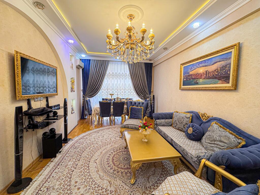 Nizami metrosunun yaxınlığında 5-7 dəqiqəlik yürümə məsafəsində yerləşən yenitikili binanın 8-ci mərtəbəsində qanuni 5-otaqlı yelçəkən mənzil çox ideal bir qiymətlə satışa təqdim olunur.Mənzildə istilik sistemi və isti su kombi,otaqların döşəməsi palıd parket,san.qovşağı ayrıdır.Mənzilin sənədi çıxarış,kupçadır.Bir mərtəbədə cəmi iki mənzil var. Xidmət haqqı alıcı tərəfdən 1%-dir.
